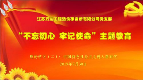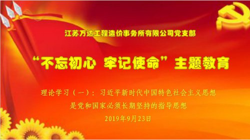 2019 年 9 月 19 日,江苏万达工程造价事务所有限公司党支部召开不忘初心、牢记使命主题教育活...