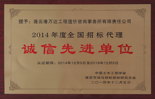 2014诚信先进单位