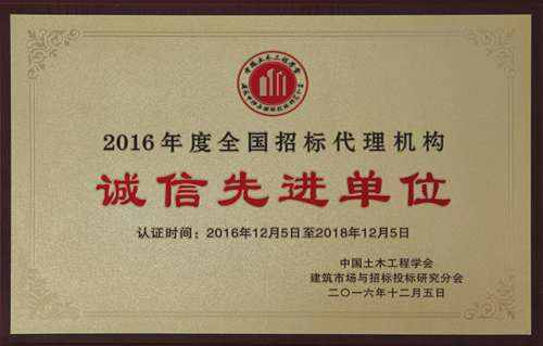 2016全国诚信先进单位