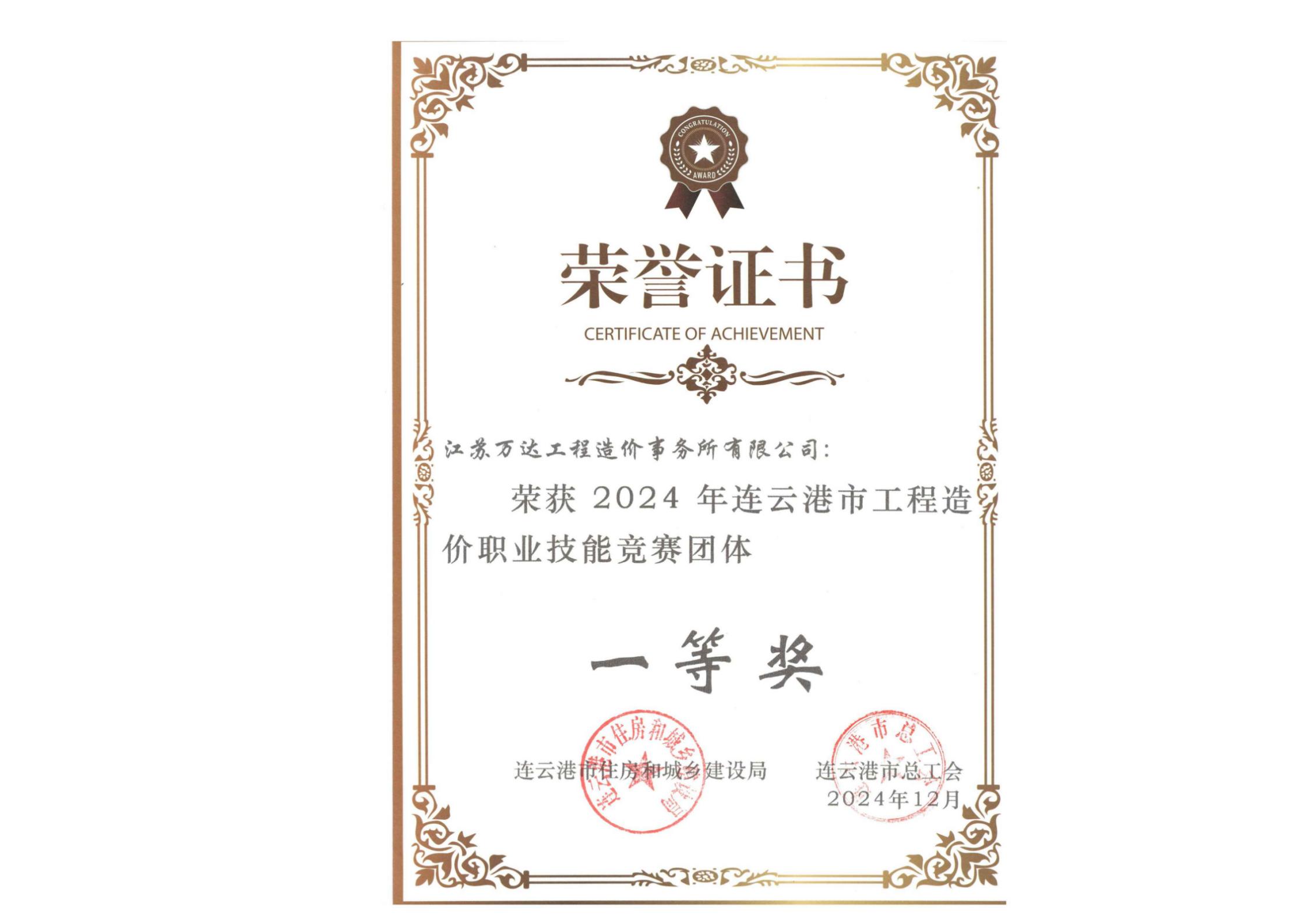 2024年连云港市工程造价职业技能竞赛团体一等奖