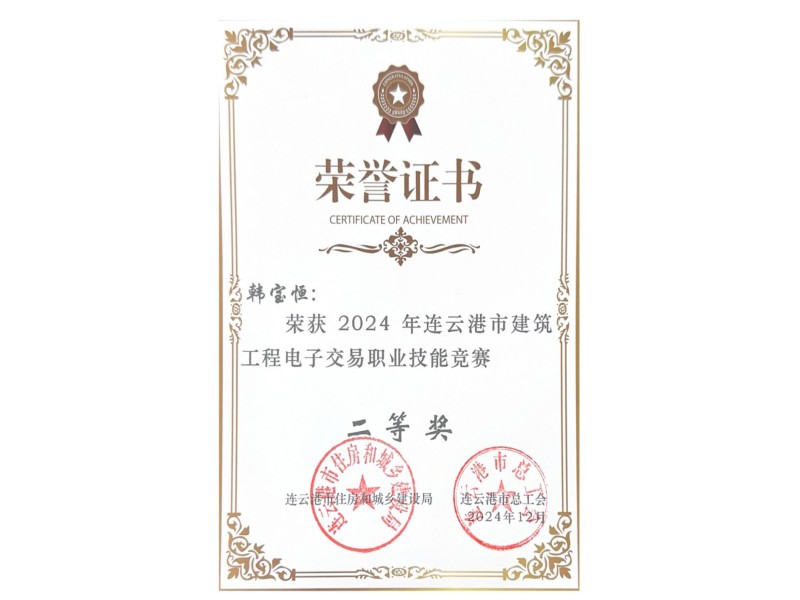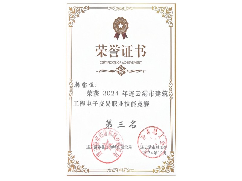 2024年韩宝恒连云港市建筑工程电子交易职业技能竞赛二等奖
