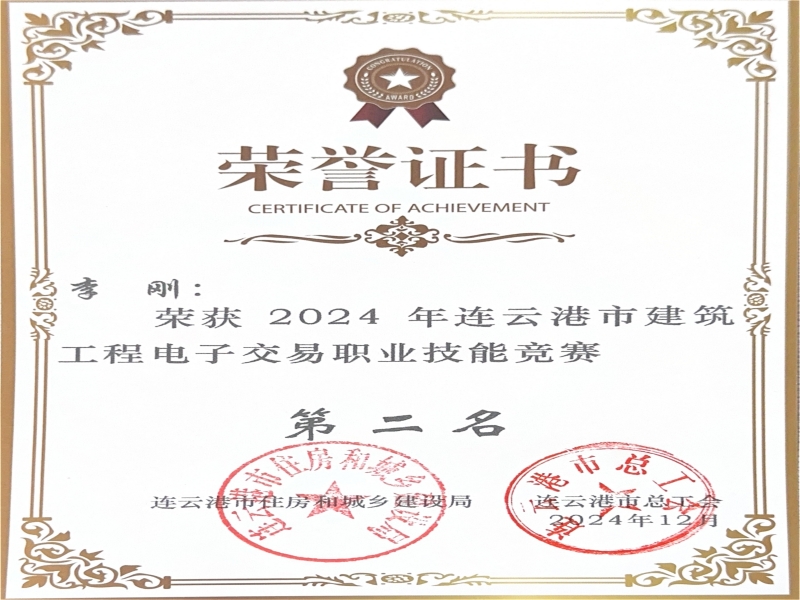 2024年李刚连云港市建筑工程电子交易职业技能竞赛二等奖