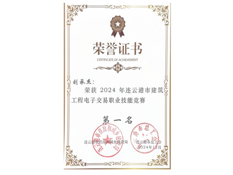 2024年刘承杰连云港市建筑工程电子交易职业技能竞赛第一名