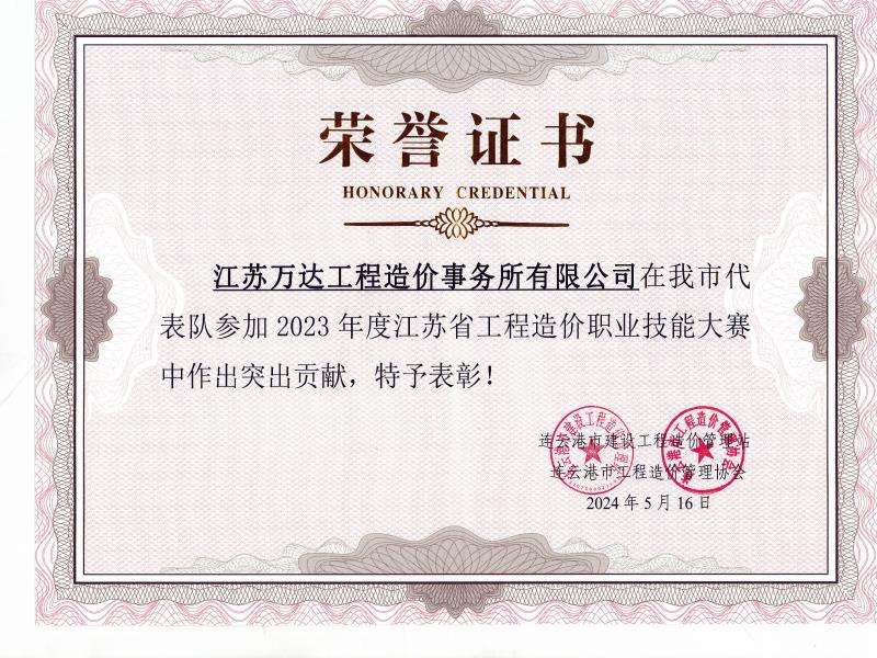 2023年度江苏省工程造价职业技能大赛突出贡献奖